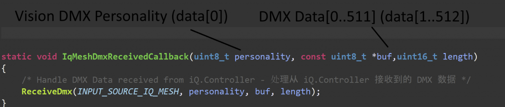 | Vision DmxPersonality | dmx[1] | dmx[2] | dmx[3] | … | dmx[512] |