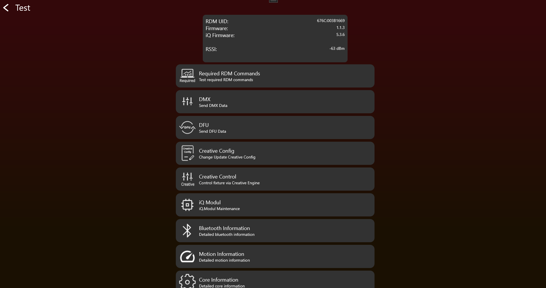After enabling the Test Mode and connecting to the fixture it should look like this: